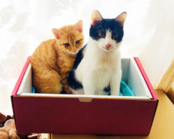 猫 箱の中の2匹の猫